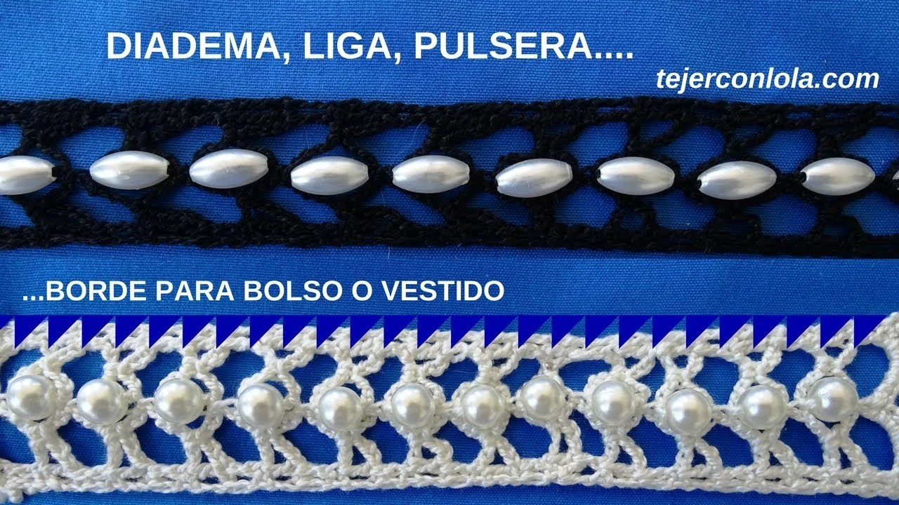 Este encaje a ganchillo con abalorios, lo puedes convertir en una diadema, una pulsera, una liga….